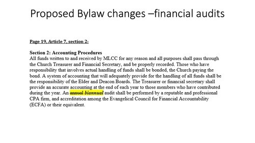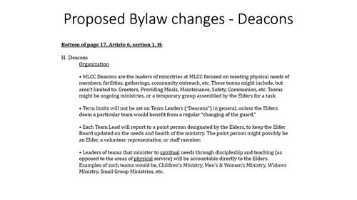The following suggestion changes to the by-laws will voted on July 20, after the 9:30 service in the park: